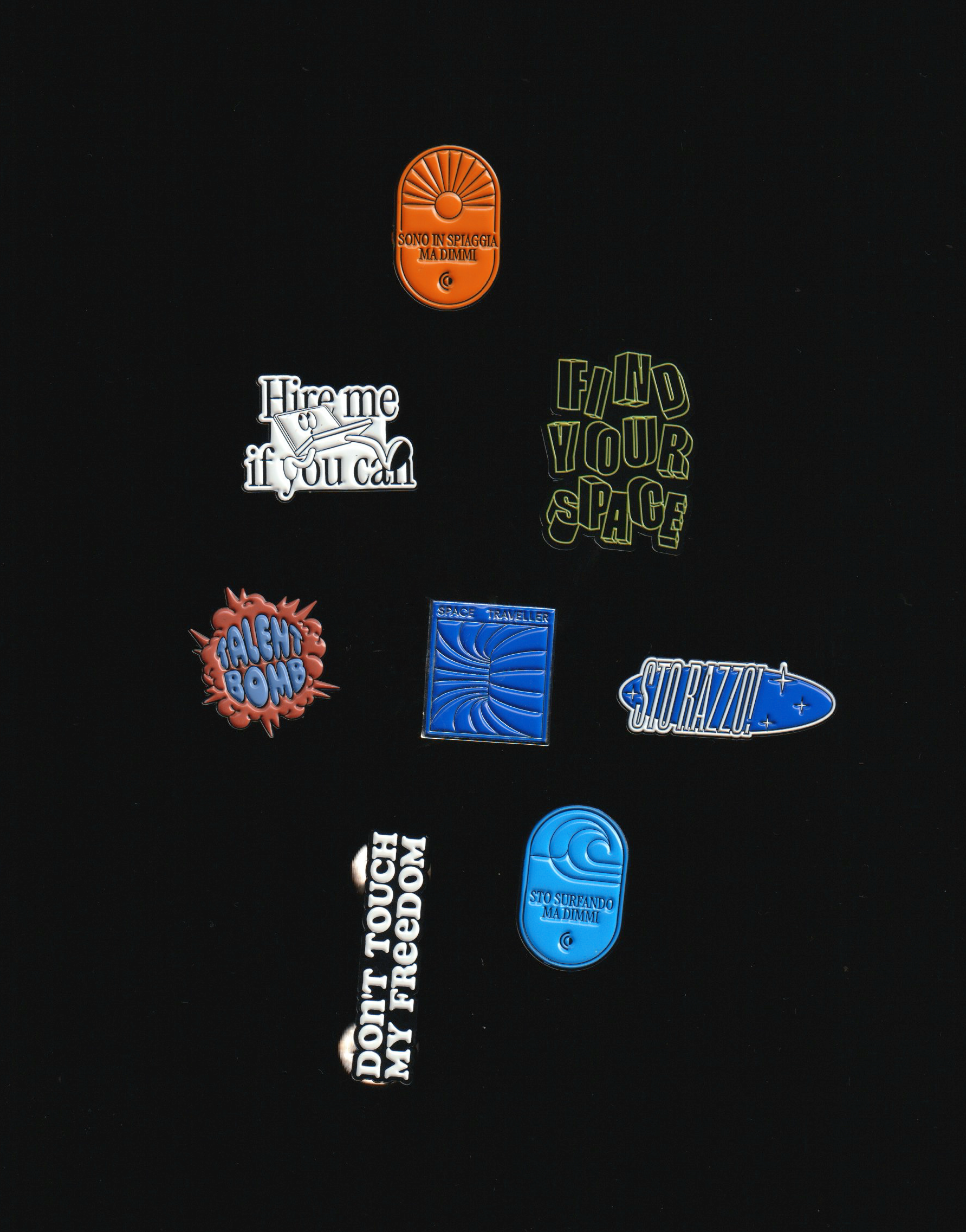Diciamolo: le spillette sono sottovalutate. Le metti su jeans, felpe, cappellini, zainetti e sei subito 'na robba diversa. Con questo pack ti arrivano 5 spille fantastiche.